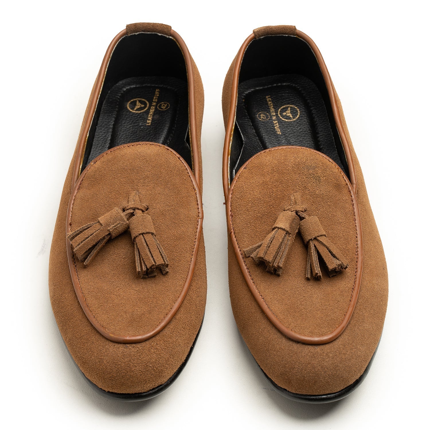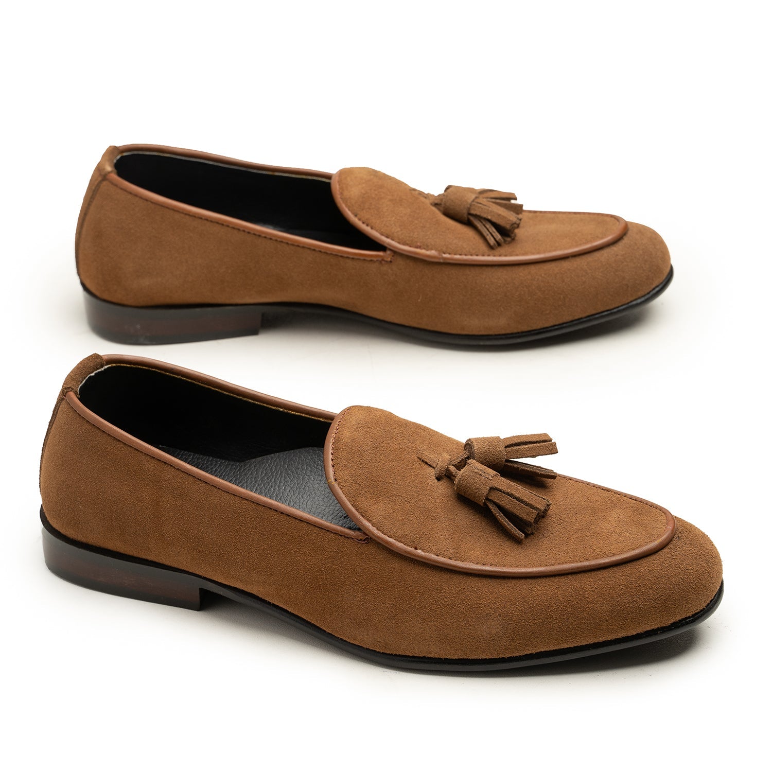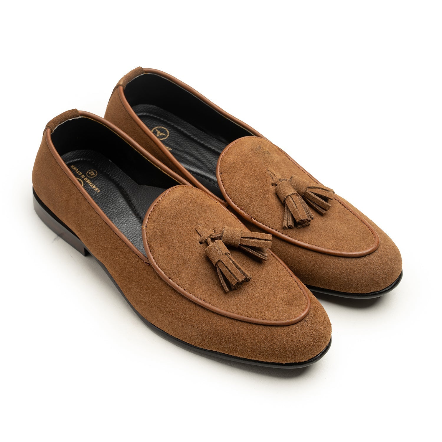 Bespoke Moccasin Shoes: Elevate your style with our bespoke suede tussle moccasin, crafted from premium suede leather.. Customize your pair with your choice of color and sole type for a truly unique look. Each pair is made to order, ensuring exceptional attention to detail. Designed with an antibacterial insole for superior comfort and hygiene, these shoes perfectly blend luxury and individuality.